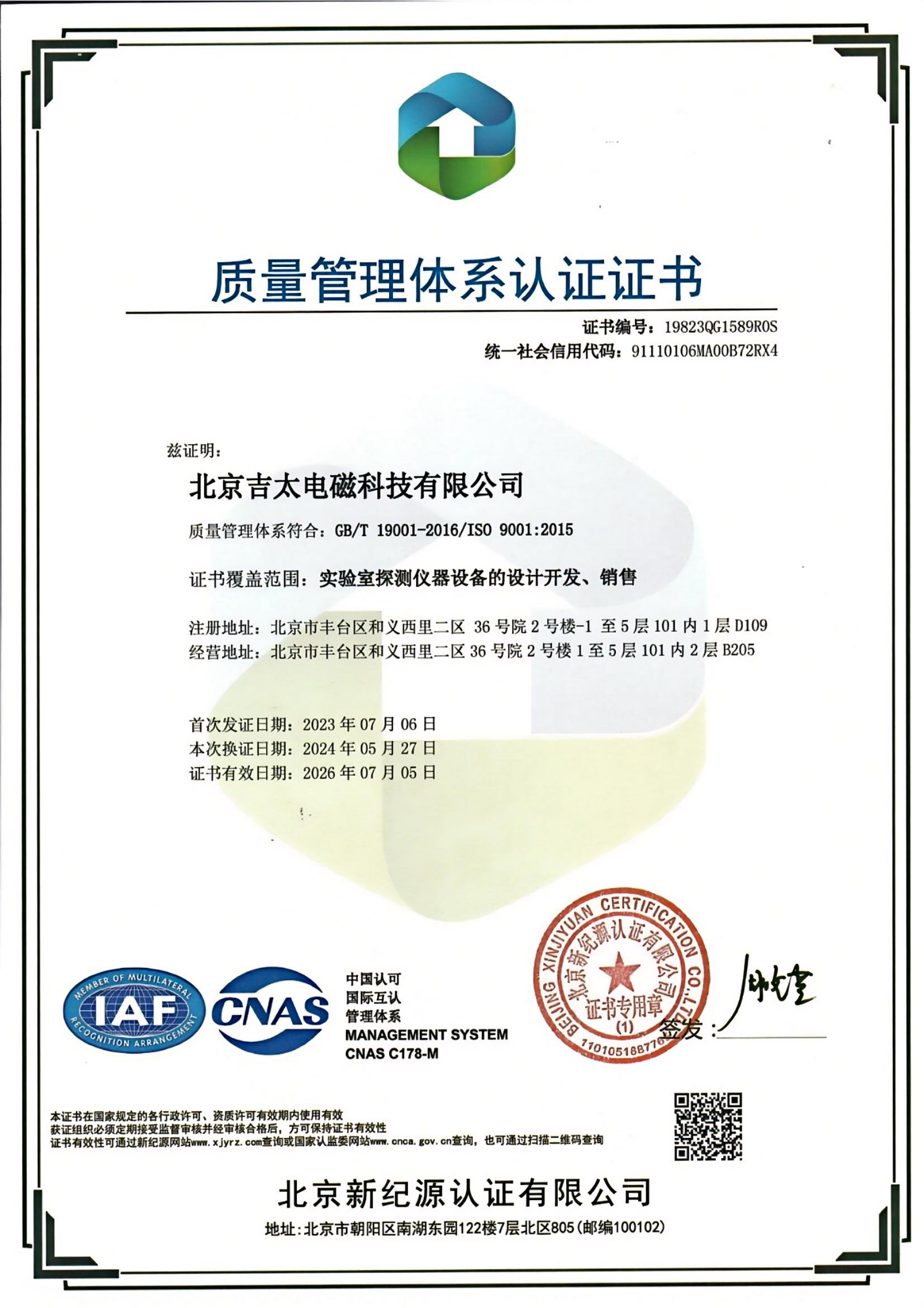 质量体系证书
